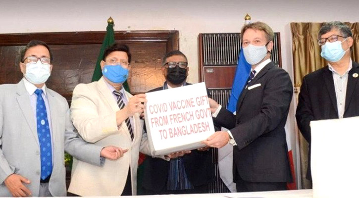 গতকাল মঙ্গলবার রাজধানীর রাষ্ট্রীয় অতিথি ভবন পদ্মায় পররাষ্ট্রমন্ত্রী ড. এ কে আবদুল মোমেন ও স্বাস্থ্যমন্ত্রী জাহিদ মালেকের কাছে আনুষ্ঠানিকভাবে এই টিকা হস্তান্তর করেন বাংলাদেশে নিযুক্ত ফরাসি রাষ্ট্রদূত জিন মারিন ছুহ।