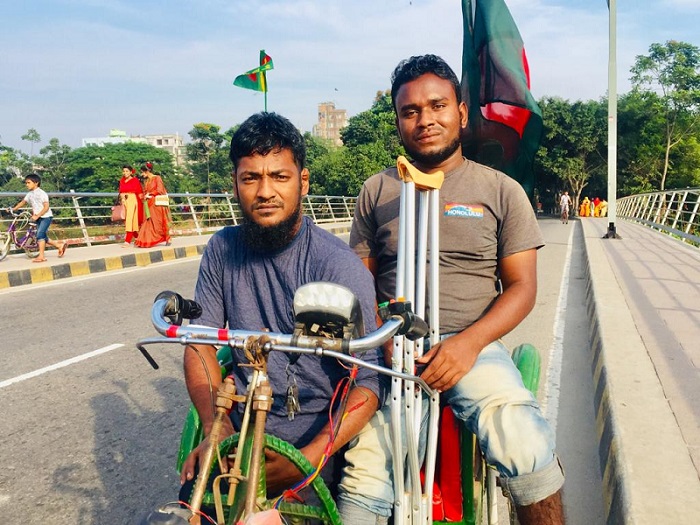 বাংলাদেশের ৫০তম বিজয় দিবসের দিনে তারা দুজনের দেখা হাতিরঝিলের ব্রিজের উপর। প্রতিবন্ধীদের যাতায়াতের জন্য বিশেষভাবে বানানো একটি অটো চালাচ্ছেন একজন। আরেকজন দাঁড়িয়ে মোবাইল দিয়ে ভিডিও করছেন। এভাবে তারা বিজয়ের আনন্দ ভাগ করে নিচ্ছেন। তারা একজন আরেকজনের বন্ধু। আগে একই বাসায় থেকে ভিক্ষা করতেন রামপুরা এলাকায়। কিন্তু এখন স্ত্রী-সন্তান নিয়ে থাকেন আলাদা আলাদা বাসায়। অবসর সময়ে প্রায়ই ঘুরতে বের হন।