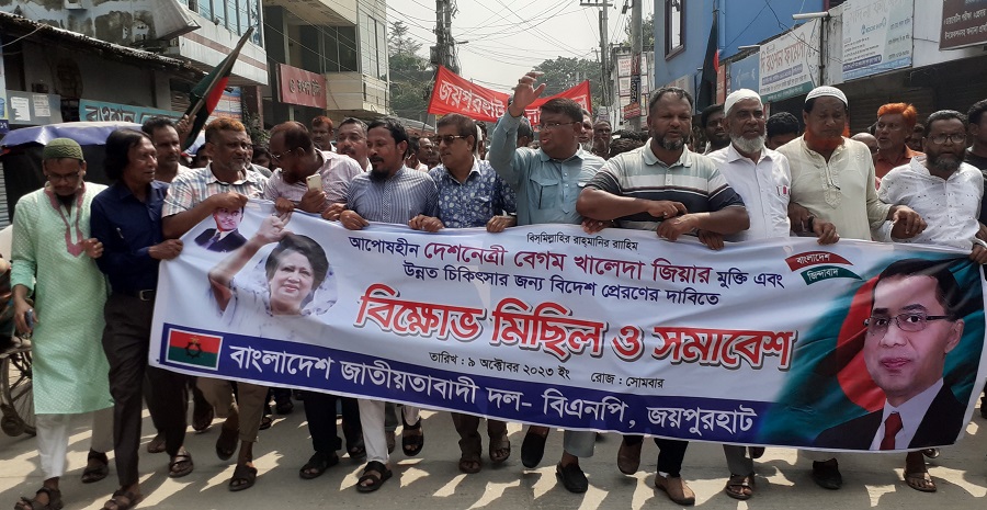খালেদা জিয়ার মুক্তির দাবিতে জয়পুরহাটে বিএনপির বিক্ষোভ