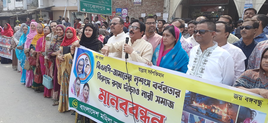 বুধবার সকাল ১১ টায় কেন্দ্রীয় কর্মসূচির অংশ হিসেবে জেলা শহরের জয়পুরহাট কেন্দ্রীয় জামে মসজিদ মার্কেট চত্বরের জিরো পয়েন্টে জেলা মহিলা আওয়ামী লীগের উদ্যোগে এ মানববন্ধন চলাকালে আয়োজিত প্রতিবাদ পথ সভায় সভাপতিত্ব করেন- জেলা মহিলা আওয়ামী লীগ সভাপতি শাম্মিম আজিজ সাজ।