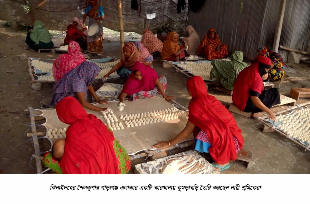 ঝিনাইদহে মাসকালাই আর চালকুমড়ার সাথে কালোজিরা ও মসলা মিশিয়ে তৈরি করা মুখরোচক খাবার কুমড়াবড়ি উৎপাদনের কারখানা ব্যাপক সাড়া ফেলেছে। এসব কারখানায় প্রতিদিন গড়ে তৈরি হচ্ছে ১৫ থেকে ২০ মন বড়ি। বাণিজ্যিকভাবে যা বিক্রি করে, খরচ মিটিয়ে মাসে কয়েক লক্ষ টাকার ওপর আয় করছেন নারী-পুরুষ ও শিক্ষিত বেকার যুবকেরা। জনপ্রিয় খাবারটি তৈরি আর বাজারজাত করে শুধু কারখানা মালিকই লাভবান হচ্ছেন তা নয়, তৈরি হচ্ছে কর্মসংস্থানও। গ্রামের দুস্থ-অসহায় দেড় শতাধিক নারী-পুরুষের কর্মসংস্থান হয়েছে অজপাড়াগাঁয়ে। এসব কারখানার কুমড়াবড়ি মনপ্রতি ৮ থেকে ১০ হাজার টাকা বিক্রি হচ্ছে। আর তা পৌছে যাচ্ছে ঢাকাসহ দেশের বিভিন্ন জেলায়।