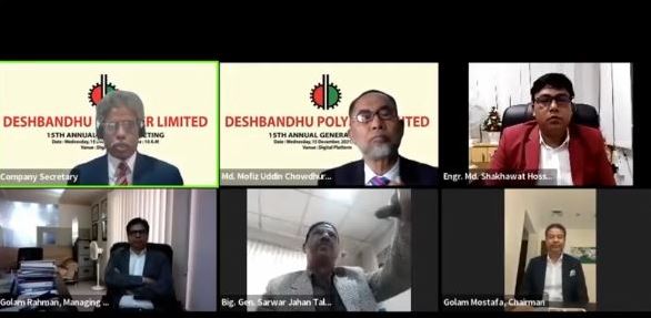 পুঁজিবাজারের তালিকাভুক্ত কোম্পানি দেশবন্ধু পলিমারের ১৫তম বার্ষিক সাধারণ সভা (এজিএম) অনুষ্ঠিত হয়েছে। সভায় বিনিয়োগকারীরা সর্বসম্মতিক্রমে ২০২০-২১ অর্থবছরের জন্য ৫ শতাংশ নগদ লভ্যাংশ অনুমোদন করে। আজ বুধবার ডিজিটাল প্লাটফর্মে এ সভা অনুষ্ঠিত হয়। কোম্পানির সচিব লিয়াকত আলি খানের উপস্থাপনায় সভার সভাপতিত্ব করেন কোম্পানিটির ব্যবস্থাপনা পরিচালক গোলাম রহমান।