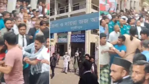 গাজীপুর মহানগরীর আদালত থেকে জামিন নিয়ে বের হয়ে আসার পর আদালত চত্বরে আসামিদের ওপর হামলা করেছে বাদীপক্ষ। এ সময় প্রকাশ্যে নারী-পুরুষসহ ১৩ আসামিকে মারধর করে