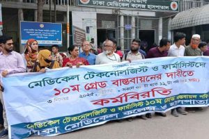 ঢাকা মেডিকেল কলেজ (ঢামেক) হাসপাতালে ১১তম গ্রেড থেকে ১০ম গ্রেডে উন্নীতকরণের দাবিতে টেকনোলজিস্ট ও ফার্মাসিস্টরা চার ঘণ্টার কর্মবিরতি পালন করেছেন। এই কর্মসূচির কারণে চিকিৎসাসেবা নিতে