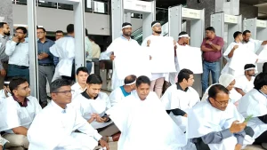 কাফনের কাপড় পরে এনবিআরে অবস্থান কর্মসূচি