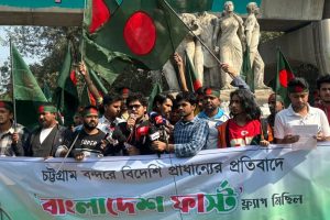 রাজু ভাস্কর্যে প্রতীকী ফ্ল্যাগ মিছিল