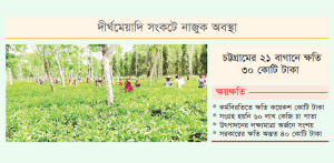সারাদেশের চা বাগানের শ্রমিকদের ধর্মঘটের কারণে দীর্ঘমেয়াদী সংকটে পড়েছে দেশের চাশিল্প। টানা ১৫ দিনের কর্মবিরতিতে কয়েকশ কোটি টাকার ক্ষতি ছাড়াও চা উৎপাদনের লক্ষ্যমাত্রা অর্জিত না